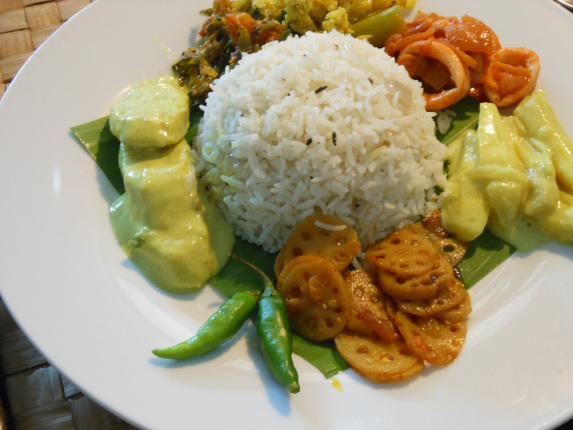 rice-curry-sri-lanka Published 11 janvier 2015 at 573 × 430 in Un parfum de cannelle ← Previous Devilled squid with alu kehel (Ash Plantain) Sudu Curry, kos (unripe Jak), Nelum Ala (lotus root) and dambala (winged bean) sambole