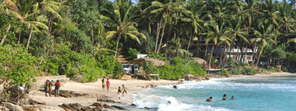 Weligama signifie « village de sable » en cingalais, et le nom dit tout. La baie en croissant est douce, la vague longue et régulière — c’est l’une des meilleures plages débutantes de l’île pour apprendre le surf. Par ailleurs, Weligama, c’est aussi ce spectacle unique au monde : des pêcheurs perchés sur des pieux fichus en pleine mer, ligne à la main, attendant que le poisson passe. Une image devenue iconique du Sri Lanka, même si la pratique se raréfie. Le bourg lui-même est encore peu touristique, les guesthouses bon marché, les rizières à cinq minutes à pied. En somme, c’est un bon point de chute pour rayonner vers Mirissa ou Galle sans payer le prix fort.